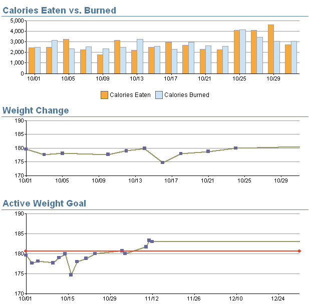 From a nutrition perspective it was a bit of a mixed bag as well. I do plan to do a good deal of eating on the weekends, partly because I like eating a lot and weekends seem to be a good time to do that with friends or family and partly because that’s when I do my longest runs and I want the fuel afterward. However I really bombed out on a couple of weekends, more than I originally planned. There was also the week long vacation at Food and Wine that really put a dent in things. I had planned on blowing it out at Food and Wine, so that was actually what I expected. What I didn’t expect was my inability to control my hunger afterward. That will end up showing up in November’s results however. Nutrient-wise I was good on everything except Vitamin E, and even that just barely. All the other micronutrients looked good. I was bit carb heavy for my likings, and had a bit more average daily alcohol as well. However that all had a lot to do with the week of binging at Food and Wine.