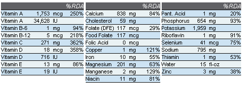 Based on this information I intend to use this whole foods Paleo Supplementation in the following way. Rather than constantly eating the same salad day after day, I will rotate the salads greens, fishes and maybe the nuts that are used in the dressing. The size of the salad will vary as well. I will look at what the pre-supplementation Calcium levels from the day before were and build a salad of a sufficient size to meet or slightly exceed 100% of RDA/DV for Calcium for the present day. My Calcium levels average week to week on Paleo have varied from a low of 60% to a high of 72%. That will allow me to scale the salad by doing something like eating half the amount of greens or keeping the greens the same but eliminating the salmon. On days that are especially high it could even be as simple as just having a can of salmon and a handful of almonds.