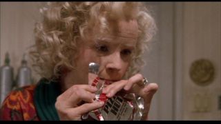 Back in the late-80s the idea that restaurants would be selling their products in the supermarket was a pretty novel concept, if it existed at all. Sure you could get a Tombstone Pizza, or Swanson’s Chicken Wings. But you couldn’t buy an assortment of TGIFriday’s appetizers, or Cheesecake Factory cheesecakes. Yet, there is Mrs. McFly with her store bought Pizza Hut “pan pizza” ready for the food hydrator.