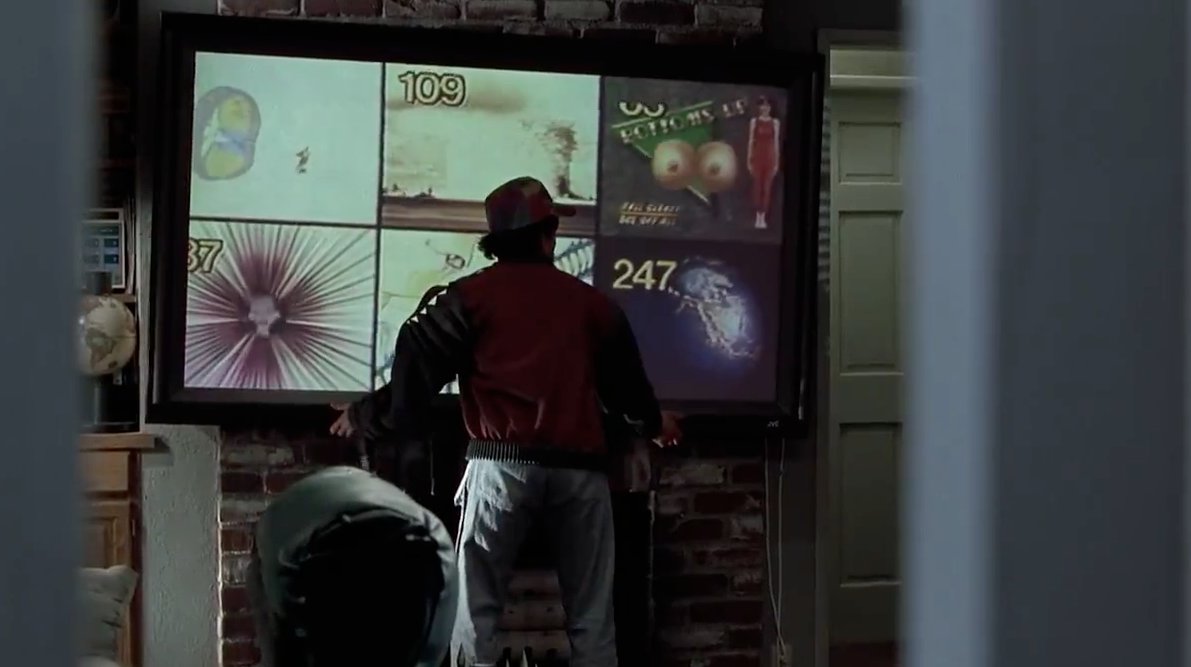 It should say “only” a thousand channels, which you can watch simultaneously if you choose to. Actually, there is a lot they got right in these scenes that people don’t give them credit for. First, there is the sheer proliferation of channels, if you choose to still be wedded to programmed video content. Your modern cable or fiber provider has literally hundreds of channels for you to choose from, including things like the scenery channel. You will also be watching it on your flat screen TV, although it won’t roll up like a movie projector (yet). You can even voice activate channel selection and settings, just ask Siri if you don’t believe me. Sadly, you can now also watch multiple channels at the same time. Modern 3D televisions actually have a feature that can simultaneously show two programs on the full screen at the same time so that two different users can be “watching” the same television at the same time. If anything though they’ve understated the amount of content that was available. With NetFlix, Amazon and other providers giving you access to thousands of shows and movies on demand, the whole “Cable of 1000 channels” is looking more anachronistic than futuristic in this 2015.