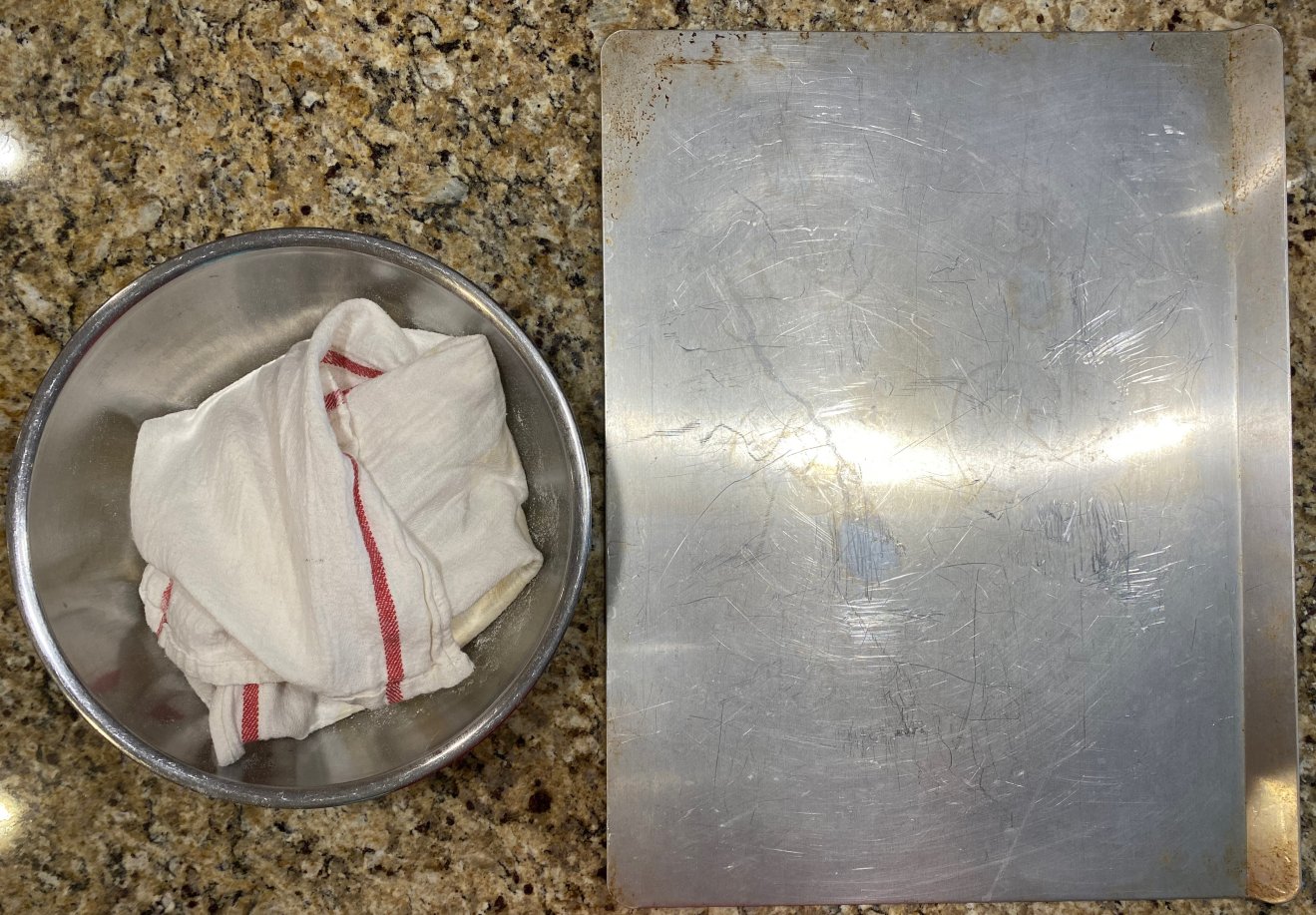 This recipe is identical to the original Jim Lahey one that can still be found on the NYT website behind a paywall. A copy can found here though. I’m repeating the steps verbatim up until the baking part where we will be replacing the pre-heated dutch oven with room temperature cookie sheets and metal bowls. Why?