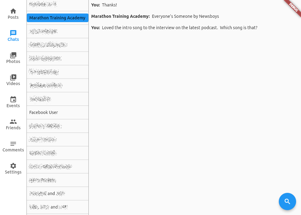 - Chats, which are the archive of all of your Facebook Messenger chats