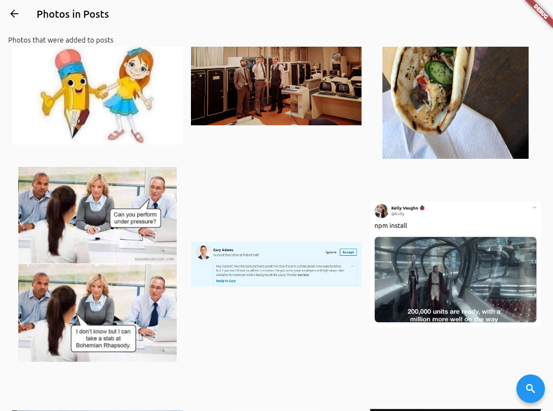 One of the hardest things about getting Facebook data, both inside and out, is finding it in the first place. When I was a regular user I’d spend a substantial amount of time trying to find the posts I was looking for. Each of the screens has a search panel that allows for easily pairing down what is visible in the timeline/gallery/etc. Below is a screenshot of that in use: