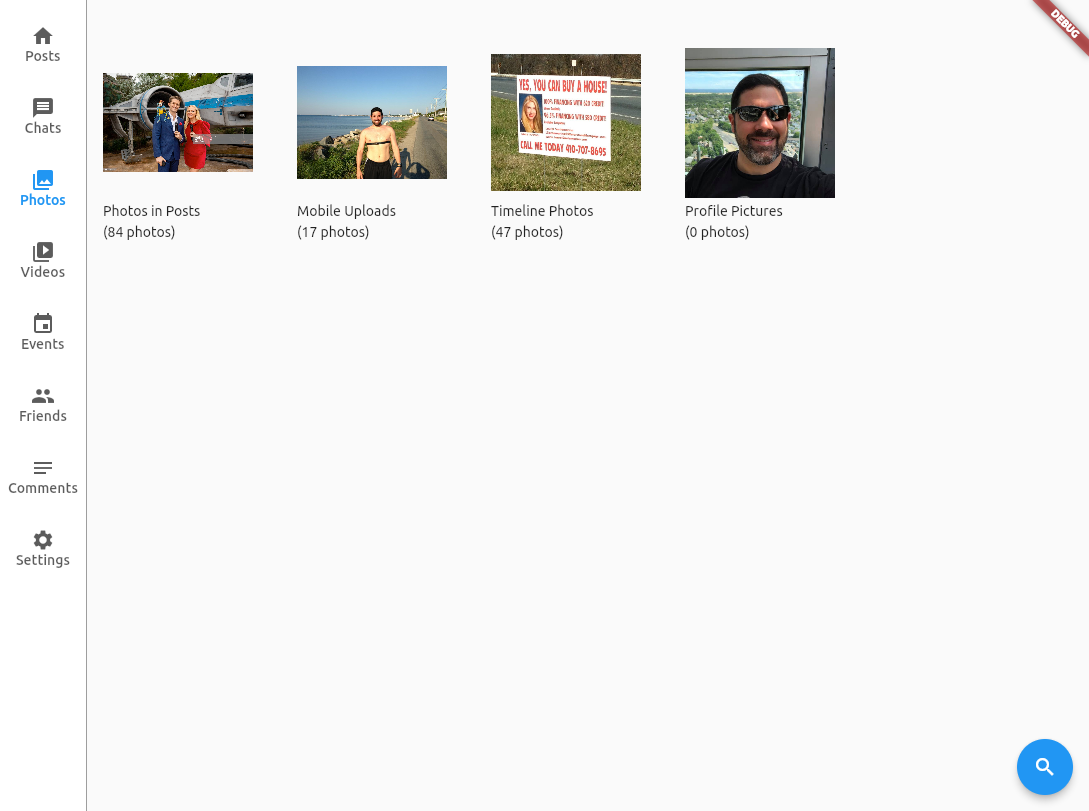 - Photos, which are all of the images you’ve ever posted into albums or posts from this account