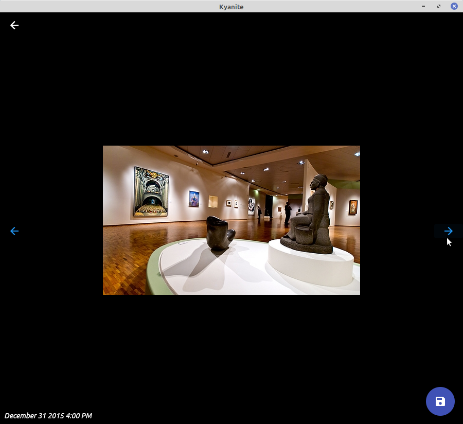 The user therefore can cycle through the images seamlessly and like before if they find one they like they can export it with the save button. Along with the on-screen buttons the carousel is also usable with the forward/backward arrow keys. Likewise hitting the Escape key will dismiss the window like the go-back arrow on the header bar.