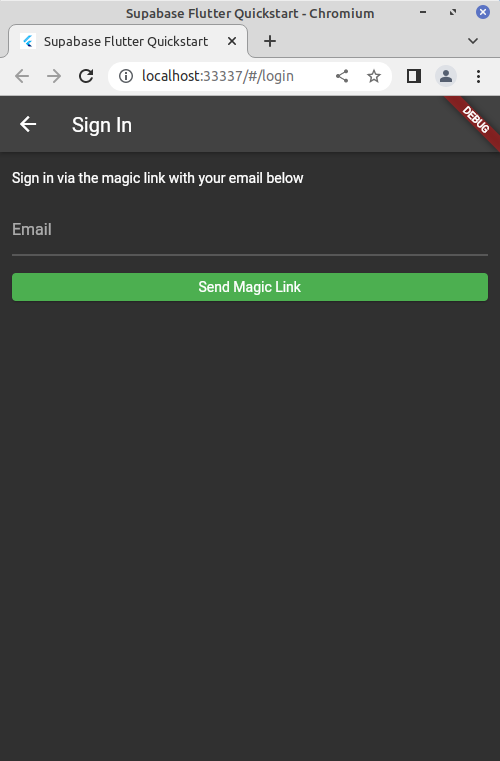 You can now put an email in to have the magic link sent to. If this is the first time your Supabase project has seen this email address it will create a new user for it. If it has seen it before it will log you into your old account. You will see the button change state as it goes through the various back-end communications and you will see a notification at the bottom with the success or error status of that interaction with the Supabase back end.