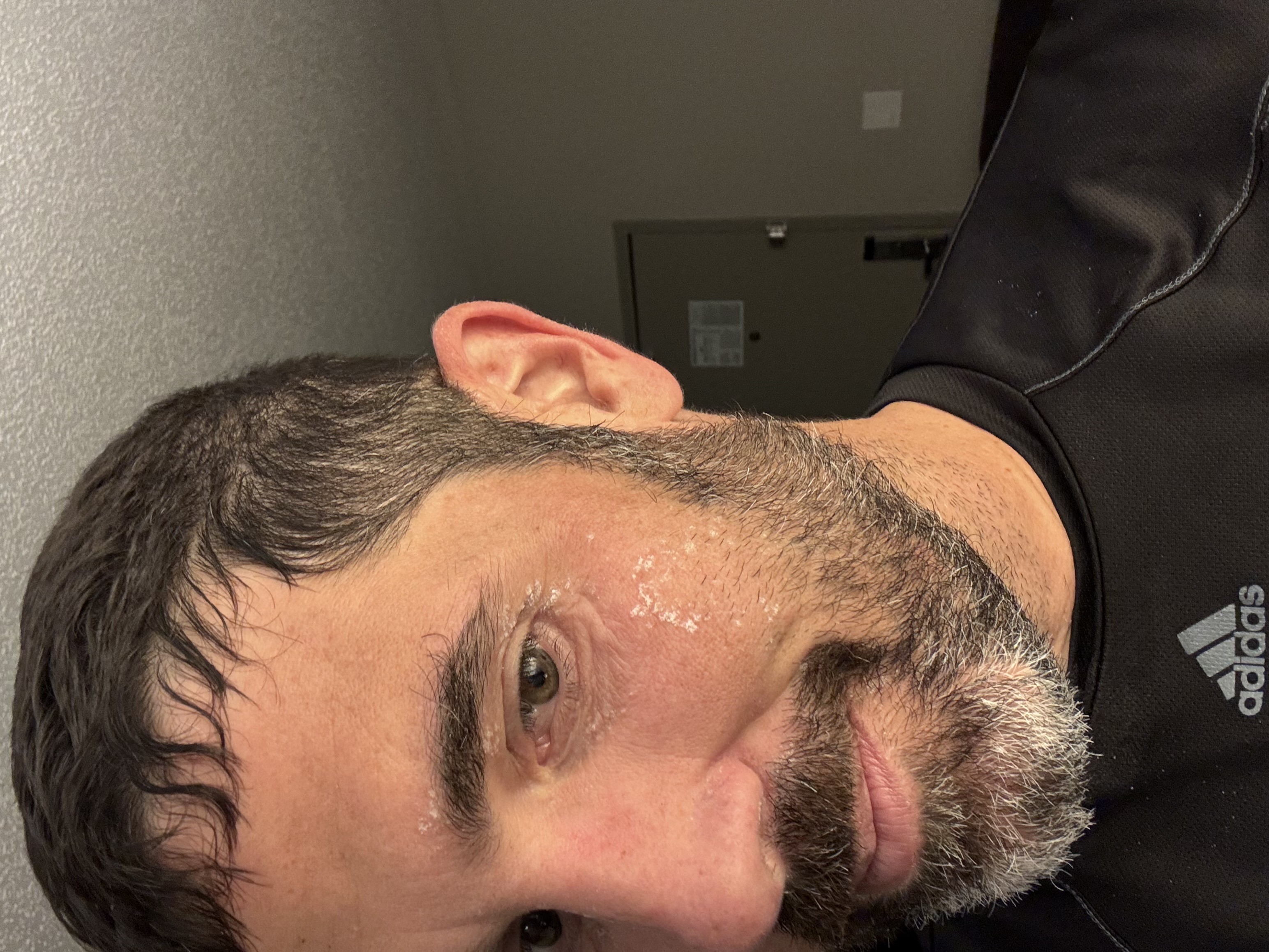 Sitting down legit felt good but after that horrible performance on the stairs I was afraid I’d have problems getting back up when we got back to the hotel. That was for later though. In the mean time I took a funny sticking my tongue out selfie just to catch my moment of relief, joy, and exhaustion. It was then I noticed how big and flaky the salt crystals on my cheek had gotten during the run. As I described it to my coach, it was like fine fleur de sel salt. The effect was even more pronounced by the time I got back to the hotel room and the sweat had mostly finished drying:
