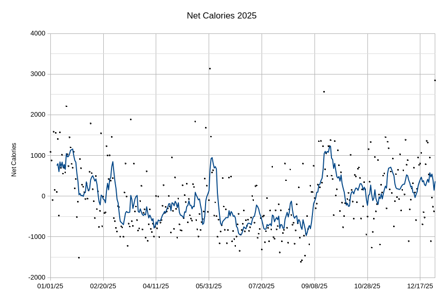 Speaking of net calories, one can get idea of what that looks like over the year below:
